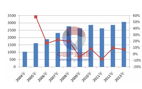 2004年-2013年我國家用燃氣灶具產量如下圖所示,除2009年、2011年燃氣灶生產總量略有下降外,其他的年份均保持著上升的趨勢。鑒于人們對節能的追求、政策的向導以及我國燃氣灶具技術的改進,燃氣灶具產量將會繼續增長,預測截至2020年我國燃氣灶具產量將會達到4320萬臺以上。
