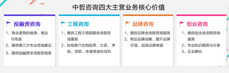 【售后服務優勢】:中哲咨詢始終把客戶的價值訴求放在第一位,對于交付的咨詢報告業務,針對各類咨詢項目,中哲咨詢提供終身免費的咨詢報告服務修改期。